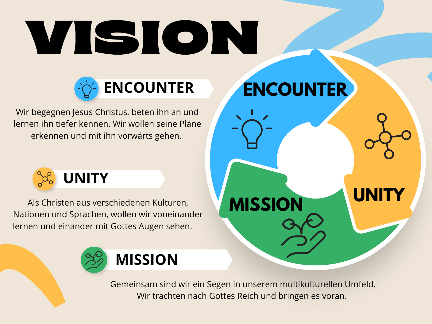 - die Jesus Christus lieben, ein Anliegen für Evangelisation, Jüngerschaft, Gemeindegründung und Mission haben und ein Segen für ihr Umfeld und die Welt sein wollen.