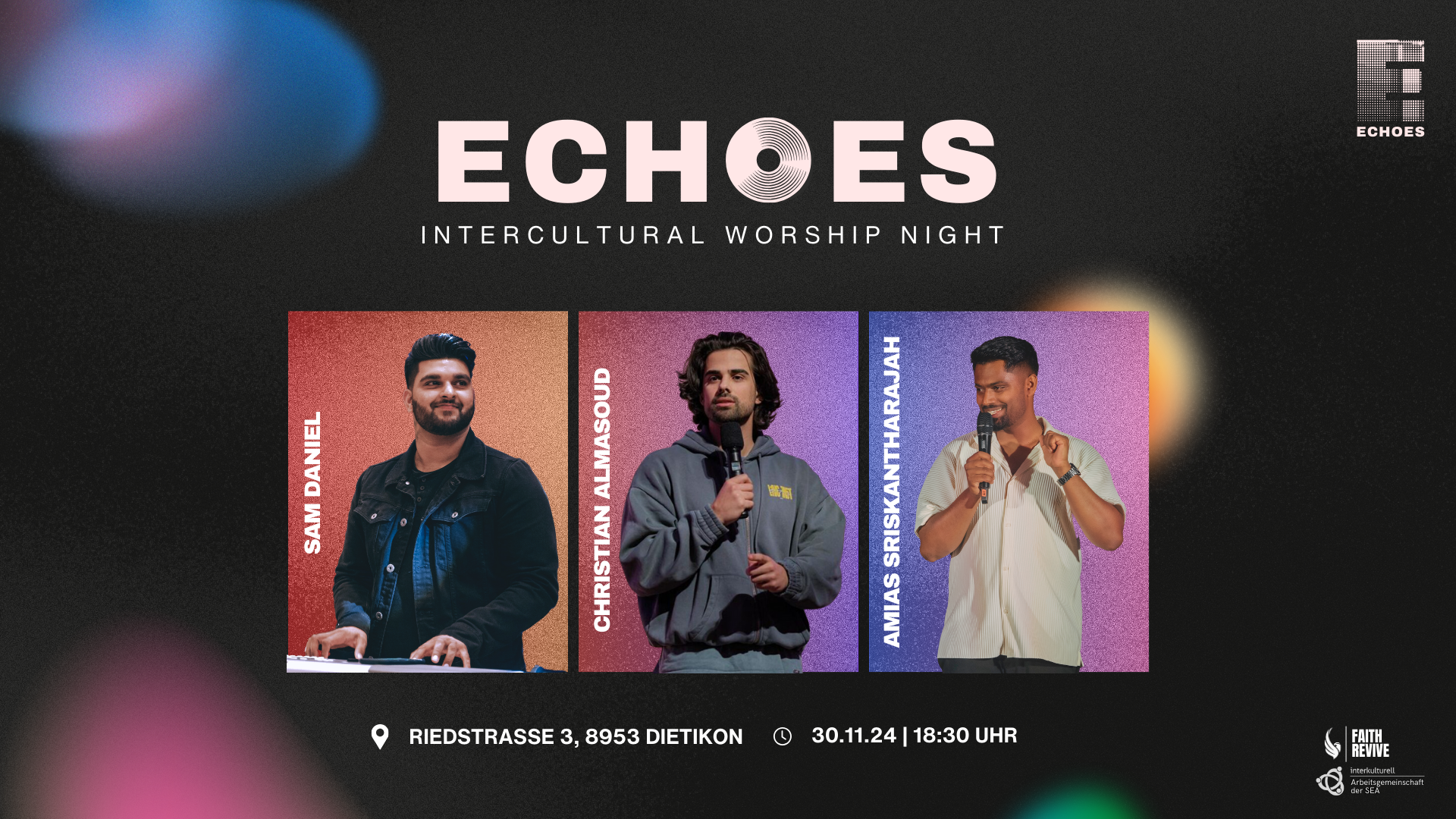 Die Echos Intercultural Worship Night ist ein Abend, an dem junge Menschen aus verschiedenen Kulturen im gemeinsamen Glauben an Jesus Christus zusammenkommen, um Jesus zu begegnen und Brücken zu Menschen aus verschiedenen Kulturen zu bauen.